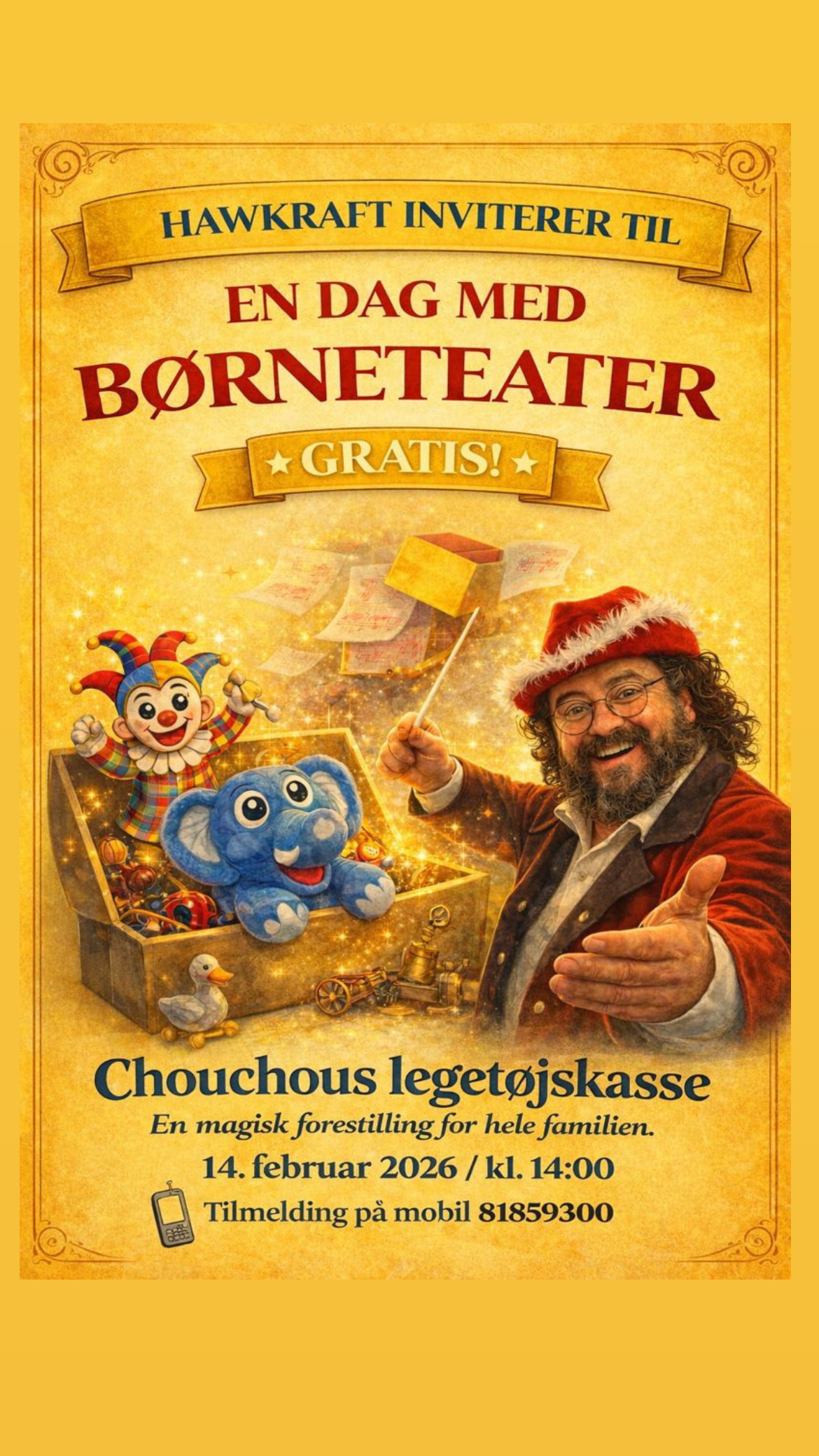 Børneteater på Hawkraft Kulturhotel 14. Februar kl. 14:00.